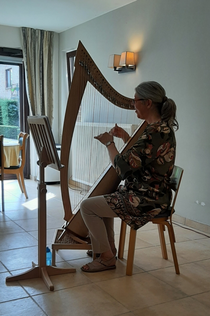 Depuis Avril 2025 au café citoyen Le Six heures à Walhain : Je propose le dernier jeudi du mois une séance de relaxation accompagnée par la harpe.